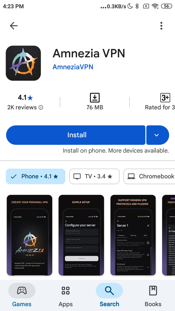 Instale la aplicación AmneziaVPN from Google Play.