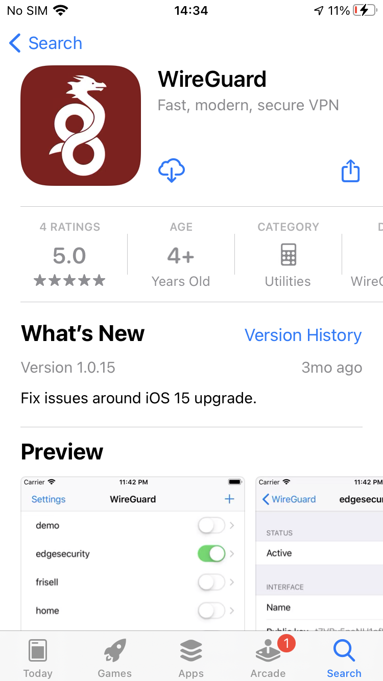 Installez l’application WireGuard f la AppStore.