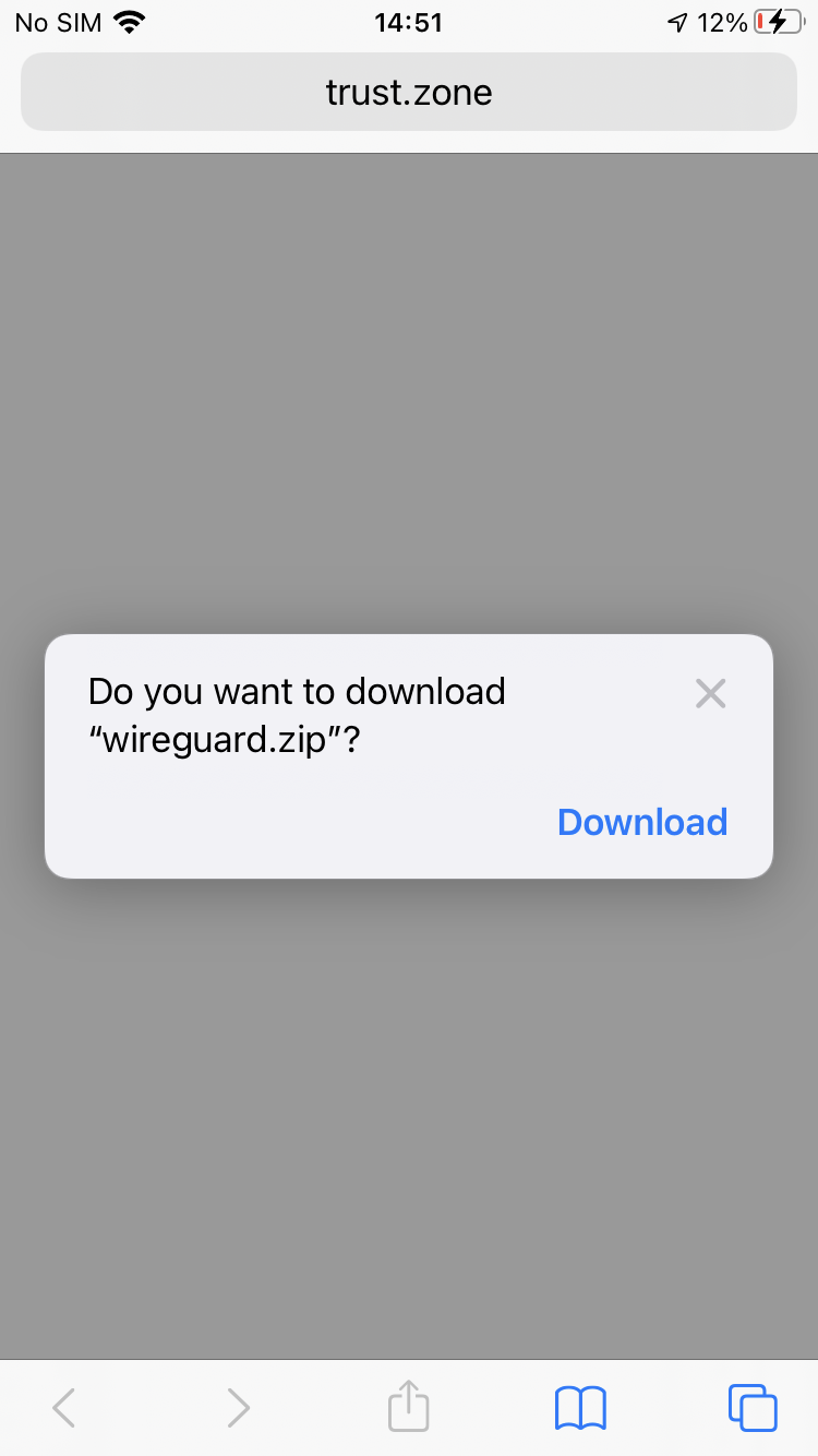 Appuyez sur le lien du fichier de configuration WireGuard ci-dessous (wireguard.zip), puis appuyez sur Télécharger pour le télécharger sur votre appareil.