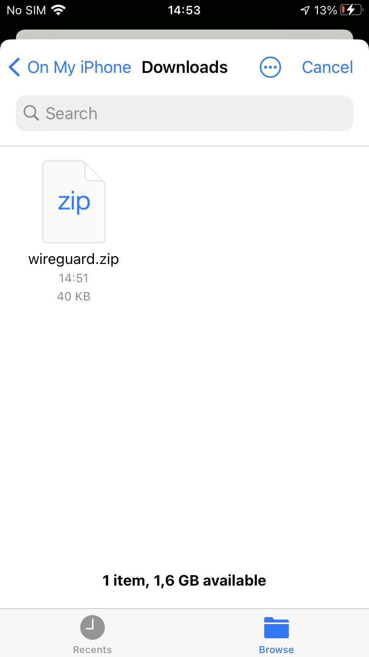 Sélectionnez le fichier wireguard.zip téléchargé.