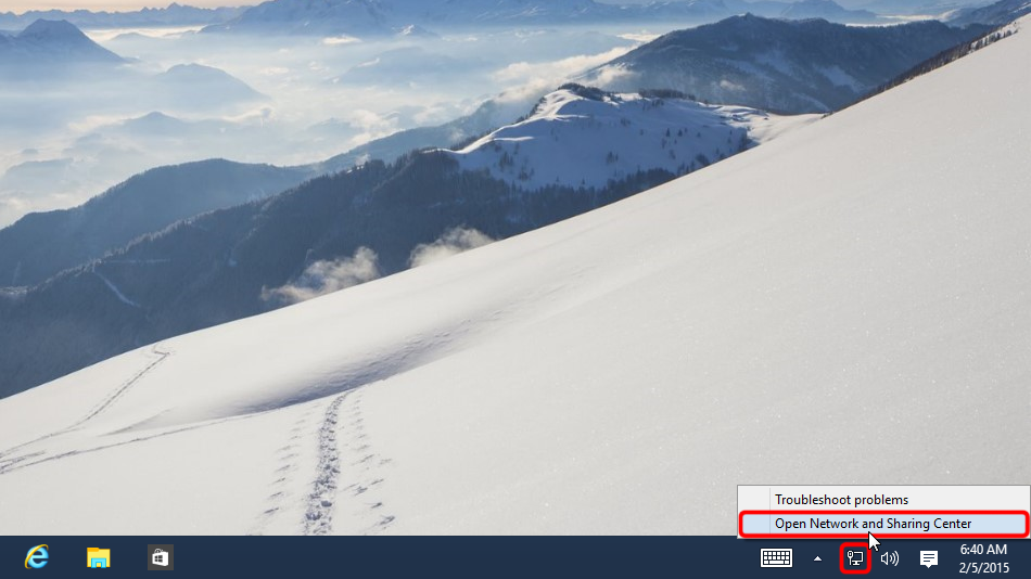 Faites un clic droit sur l’icône du réseau dans la barre d’état système, puis cliquez sur « Ouvrir le Centre de réseau et de partage ».