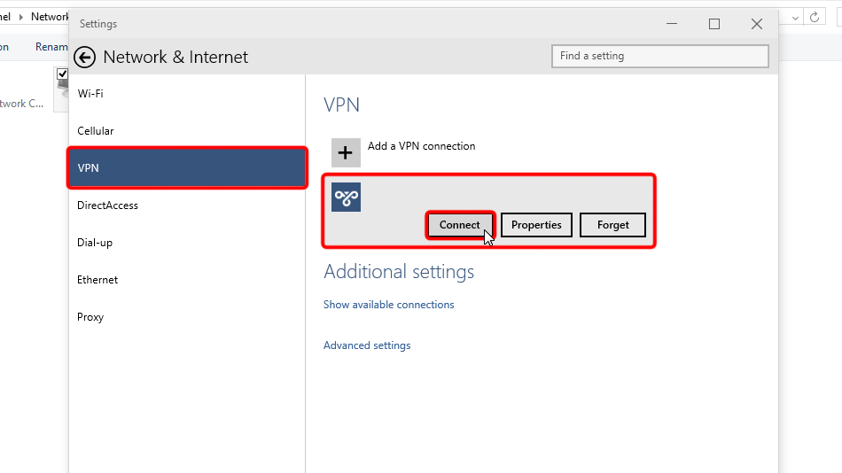 Cliquez sur l’icône du réseau dans la barre des tâches, sélectionnez la connexion VPN et cliquez sur « Connecter ».