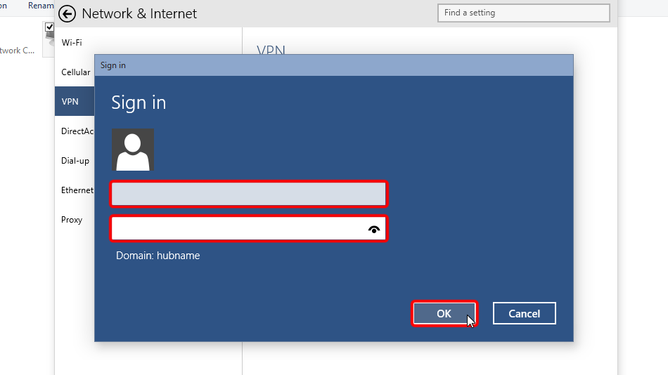 Entrez vos identifiants de connexion VPN et cliquez sur « OK ».