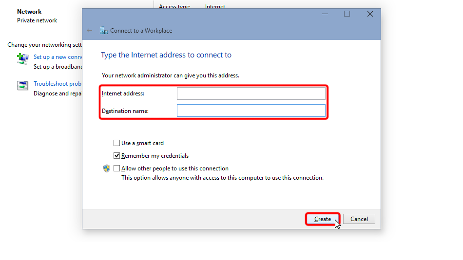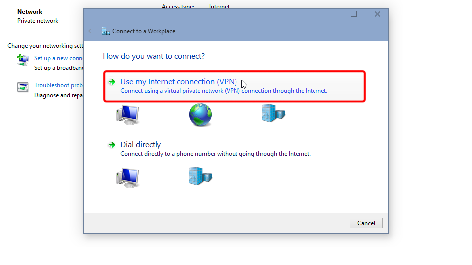 Cliquez sur « Utiliser ma connexion Internet (VPN) ».