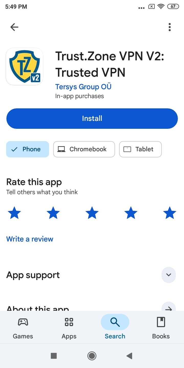 Téléchargez et installez le client VPN officiel Trust.Zone depuis Google Play : Google Play : Trust.Zone VPN - Le VPN anonyme #1