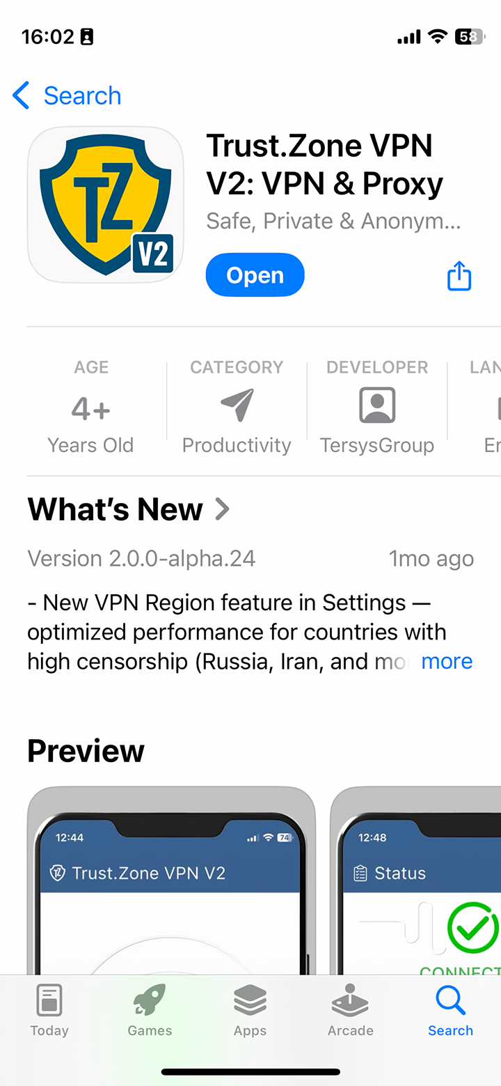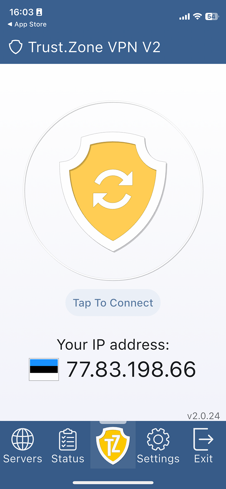 Download and install official Trust.Zone VPN Client from App Store: App Store: Trust.Zone VPN - The #1 Anonymous VPN