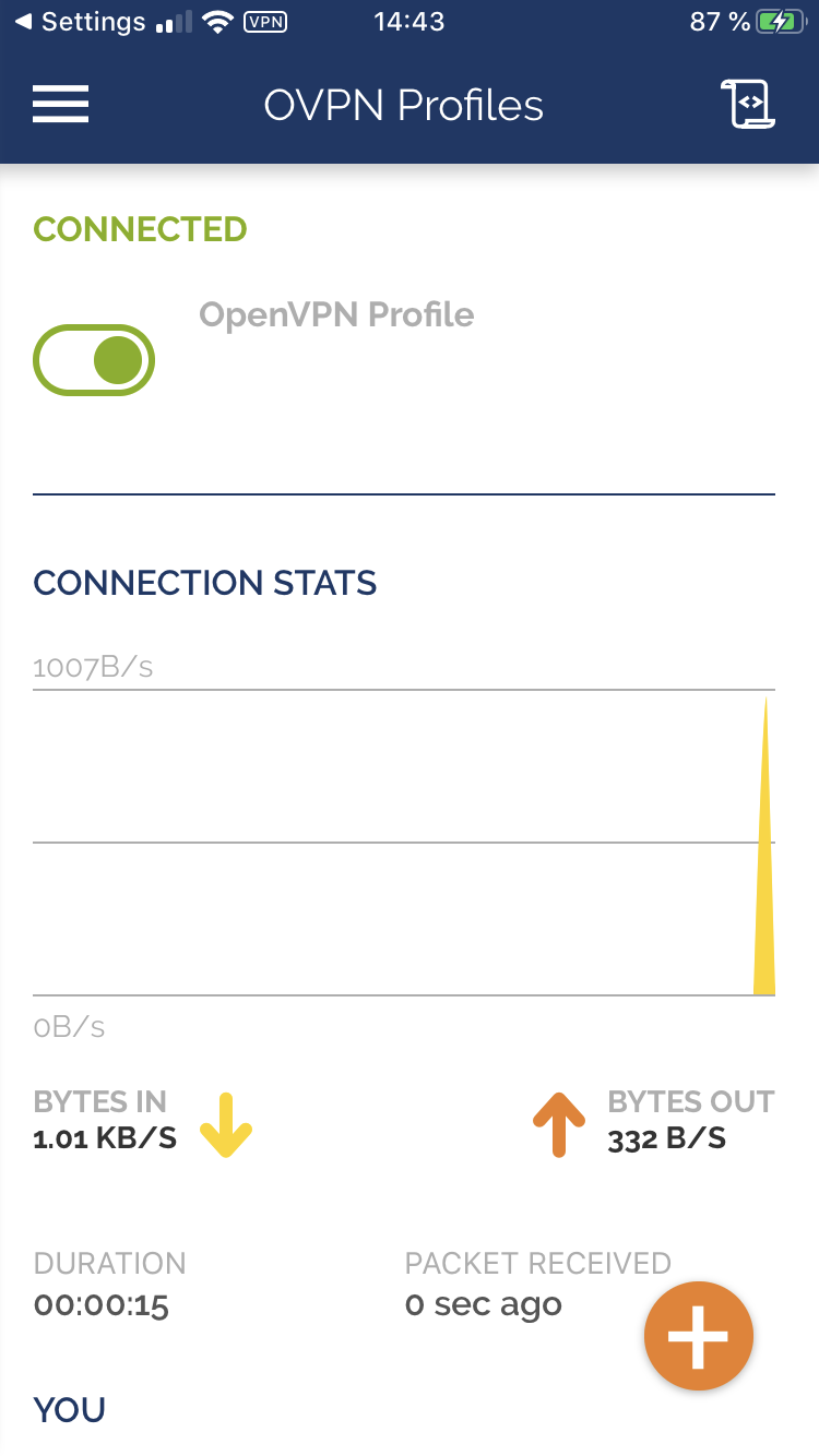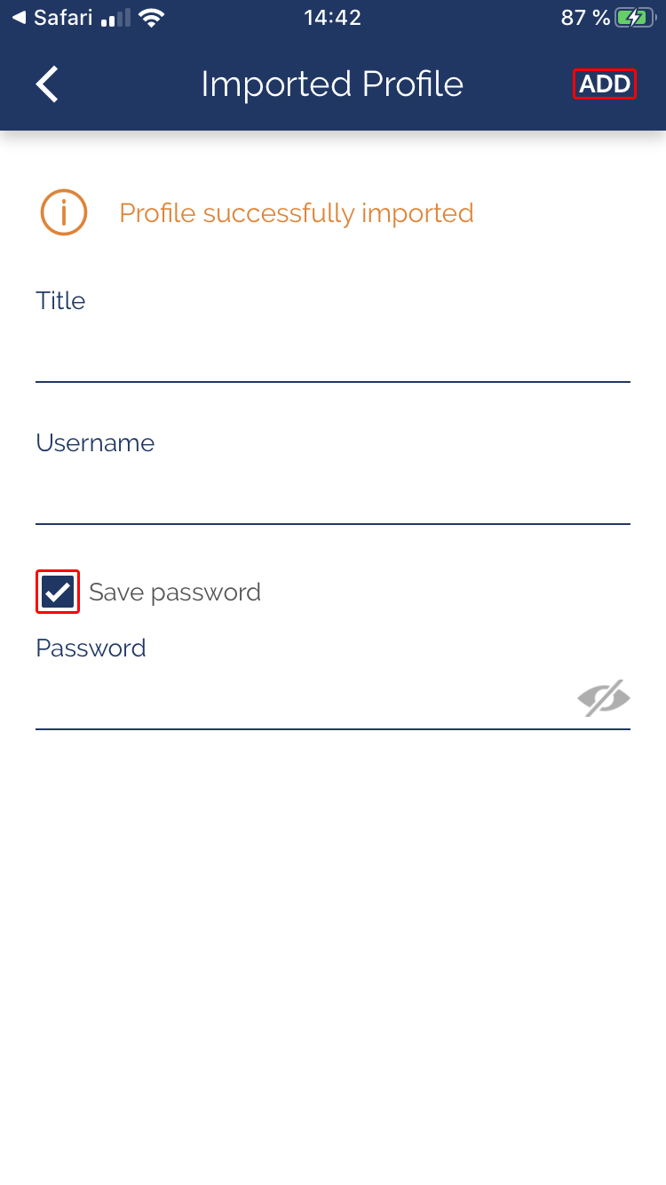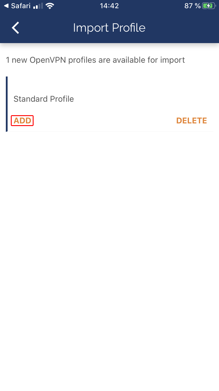 Appuyez sur le bouton AJOUTER afin d’ajouter la connexion à l’application OpenVPN Connect .