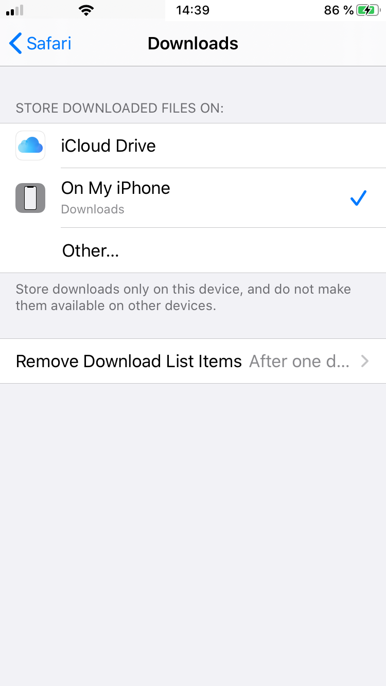 Exécutez les paramètres à partir de l’écran principal, allez dans Safari et basculez le paramètre Téléchargements sur la valeur Sur mon iPhone.