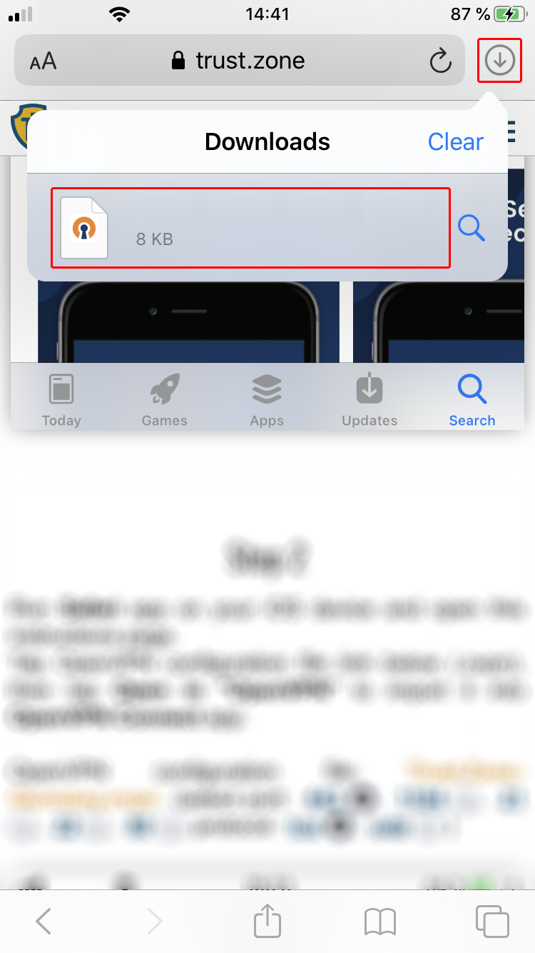 Appuyez sur le lien du fichier de configuration OpenVPN ci-dessous (.ovpn), puis appuyez sur Télécharger pour commencer le téléchargement.