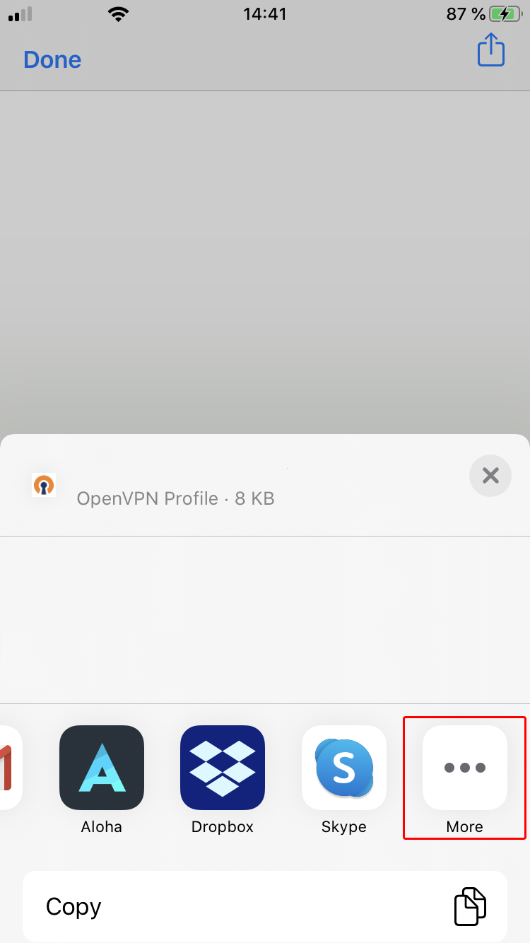 Trouvez l’élément Copier sur OpenVPN dans la liste et appuyez dessus.