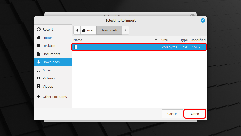 Cliquez sur l’icône du menu réseau, choisissez « Connexions VPN » et cliquez sur le nom de votre connexion créée pour établir une connexion VPN.