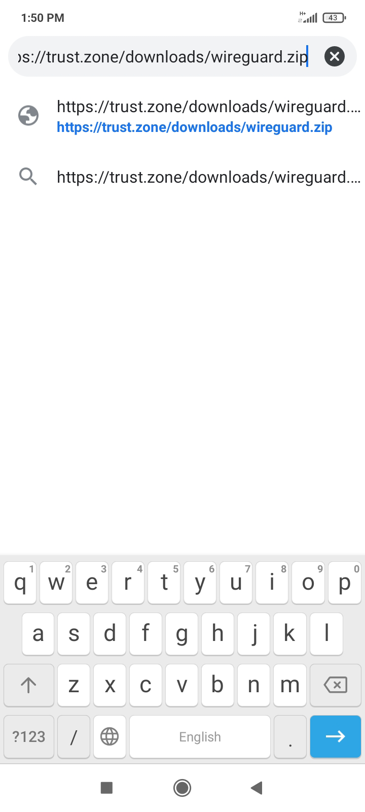 Open your favorite browser on your Android device, make sure you're logged into your Trust.Zone account and download the wireguard.zip archive file. This archive file contains WireGuard tunnel files for all Trust.Zone VPN zones: