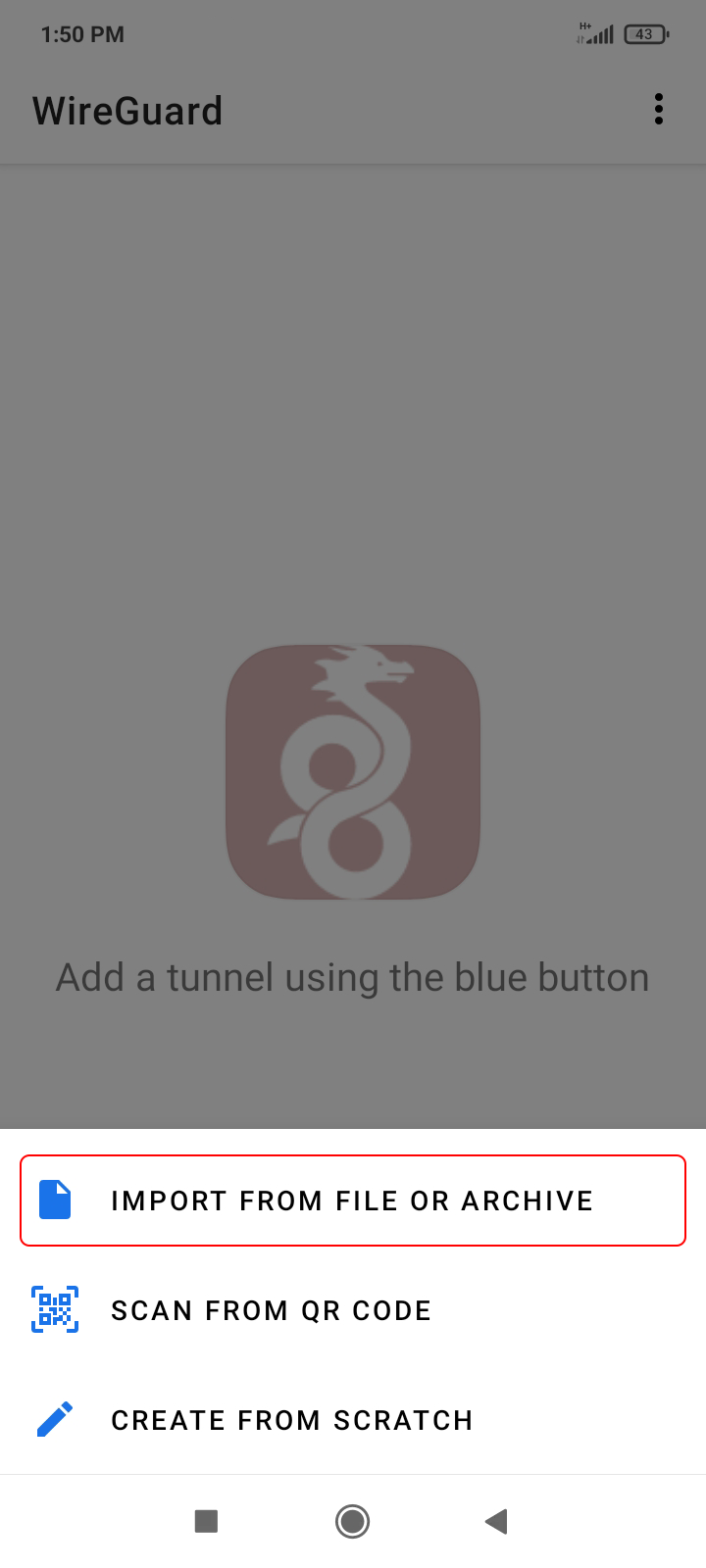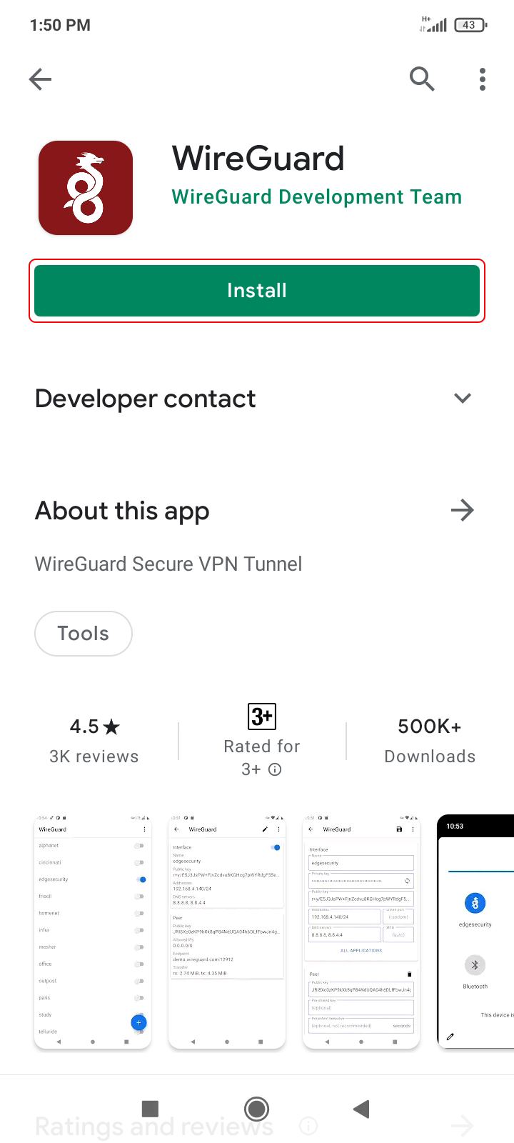 Download and install official WireGuard Client from Google Play: Google Play: WireGuard