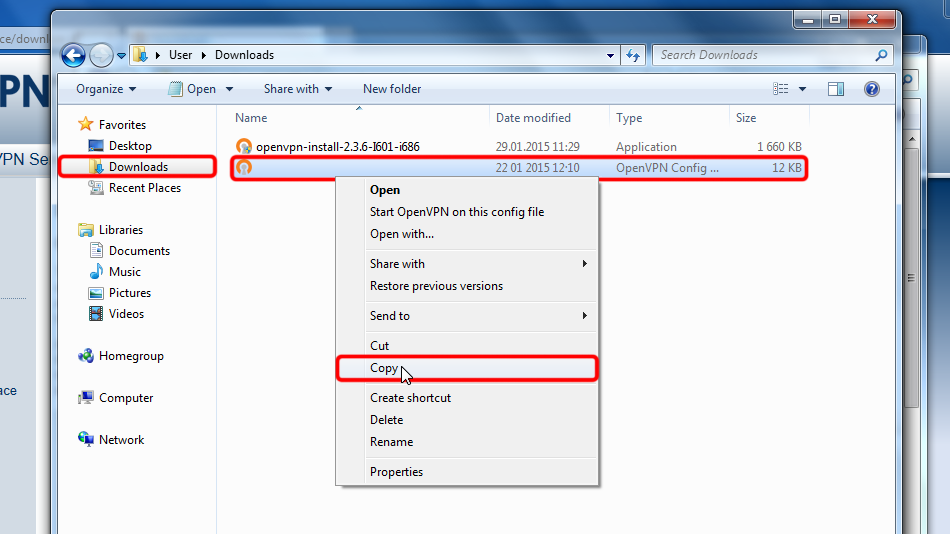 Here are instructions in details: Download the configuration file(s), open "Downloads" folder, select downloaded configuration file(s), select file(s) right-click on it(them) and click "Copy".