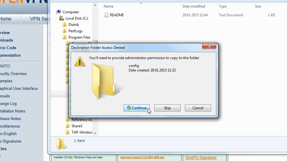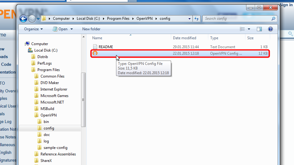 Navigate to your OpenVPN "config" folder, by-defalut this is "C:Program FilesOpenVPNconfig" and paste config file(s) there: right click on free space in folder then click "Paste".