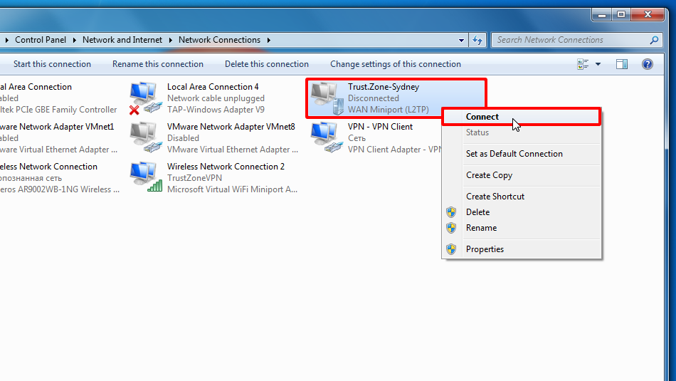 Artık VPN bağlantınızı bağlayabilirsiniz. VPN bağlantısına sağ tıklayın ve ardından Bağlan'a tıklayın.