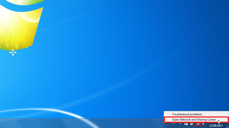 Ağ ve Paylaşım Merkezi'ni açın. Bunun için sistem tepsisindeki bağlantılar simgesine sağ tıklayın, ardından Ağ ve Paylaşım Merkezini Aç'a sol tıklayın