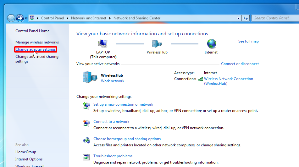 Ağ ve Paylaşım Merkezi'nde, Bağdaştırıcı ayarlarını değiştir'i tıklatın.