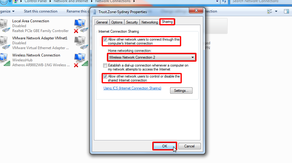 Bağlantı özelliklerinde Paylaşım sekmesini seçin, Diğer ağ kullanıcılarının bu bilgisayarın İnternet bağlantısı üzerinden bağlanmasına izin ver onay kutusunu açın ve ardından ekran ekranındakiyle aynı mesajı aldıysanız Tamam'ı tıklayın.