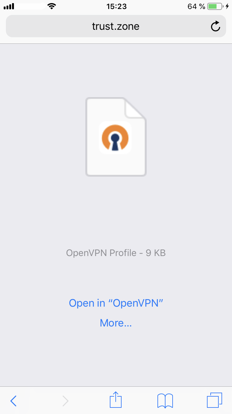 Aşağıdaki OpenVPN yapılandırma dosyası bağlantısına (.ovpn) dokunun, ardından OpenVPN Connect uygulamasına aktarmak için "OpenVPN"de Aç'a dokunun.