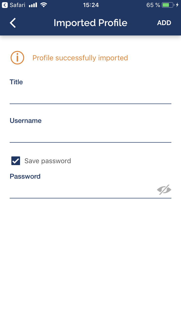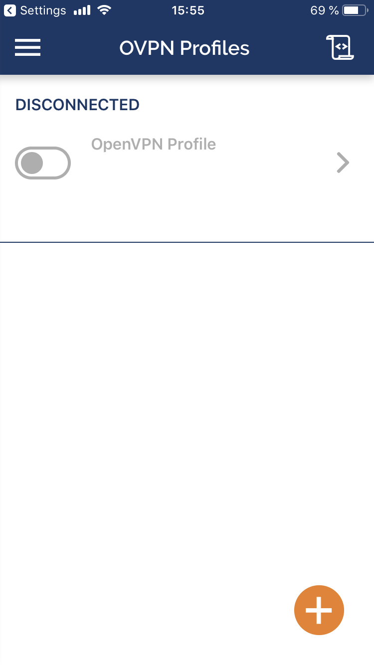 OpenVPN Connect uygulamasına bağlantı eklemek için EKLE düğmesine dokunun.