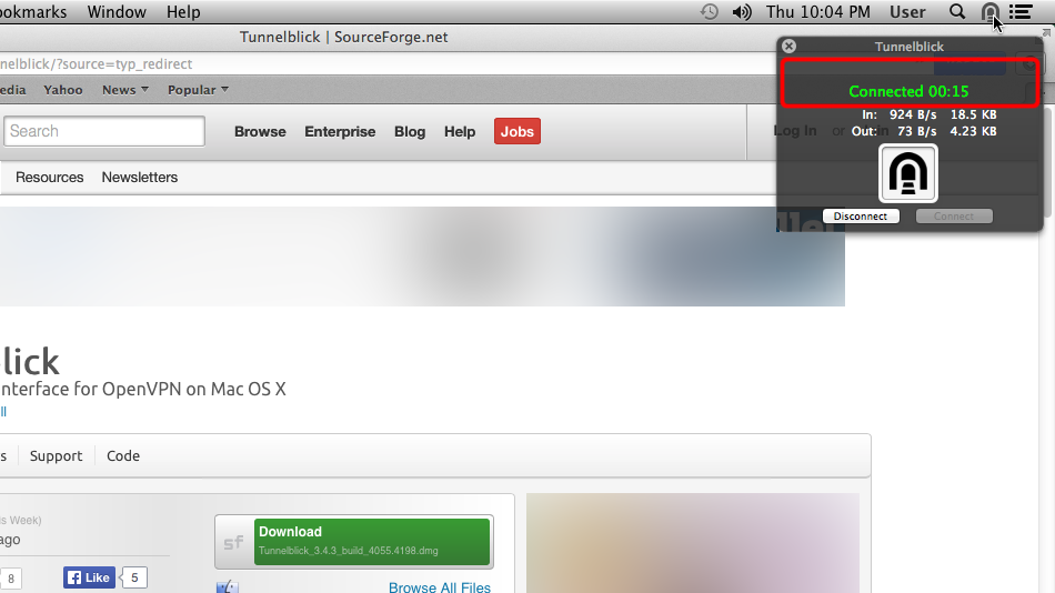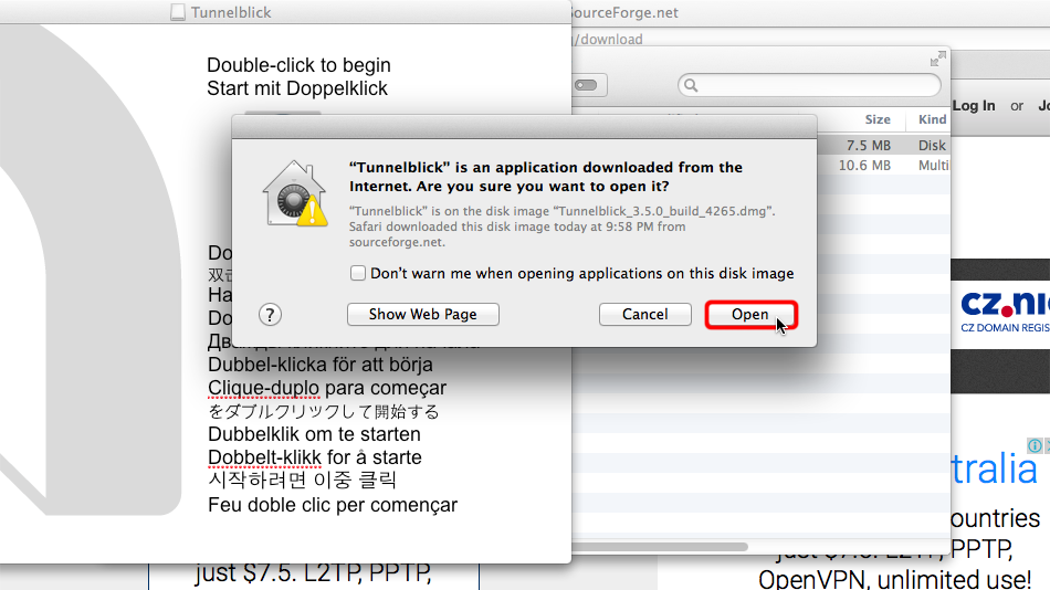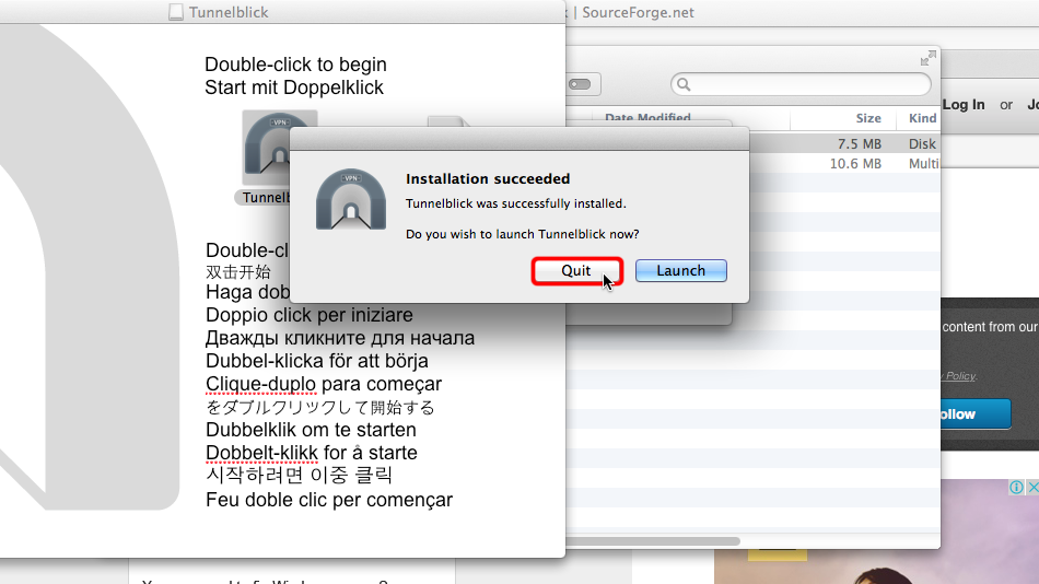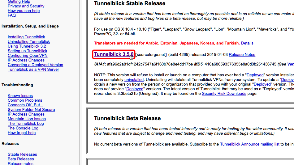 Tunnelblick'nin latest kararlı sürümünü indirin. Ekran görüntüsündeki sürüm farklı olabilir.