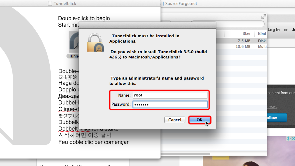 Tunnelblick yükleyici açıldığında, yüklemeye başlamak için Tunnelblick simgesine çift tıklayın.