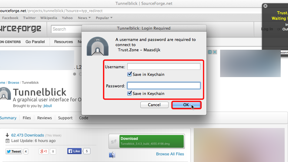 Trust.Zone'a her bağlanmak istediğinizde VPN kullanıcısı ve/veya VPN şifresi girmek istemiyorsanız "Anahtarlığa Kaydet" seçeneğini işaretleyin.